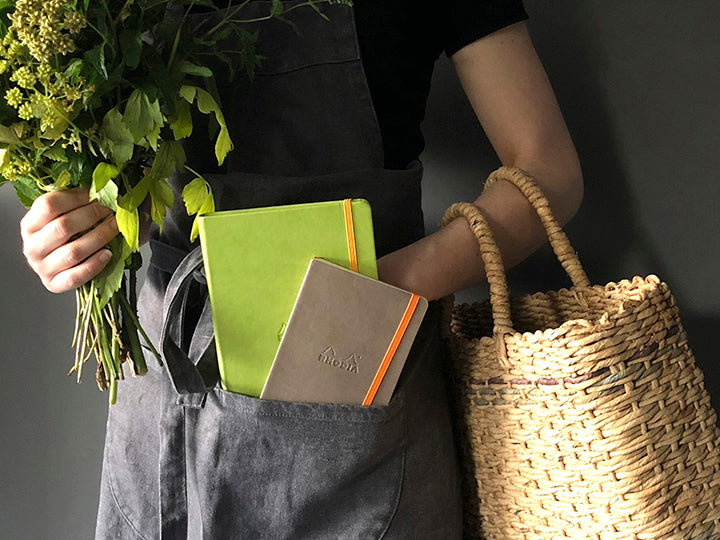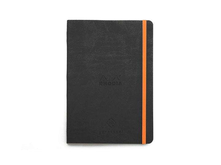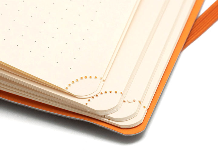 - 束帶設計,方便收納不散開,內斂 Rhodia 雲杉 logo 壓花。