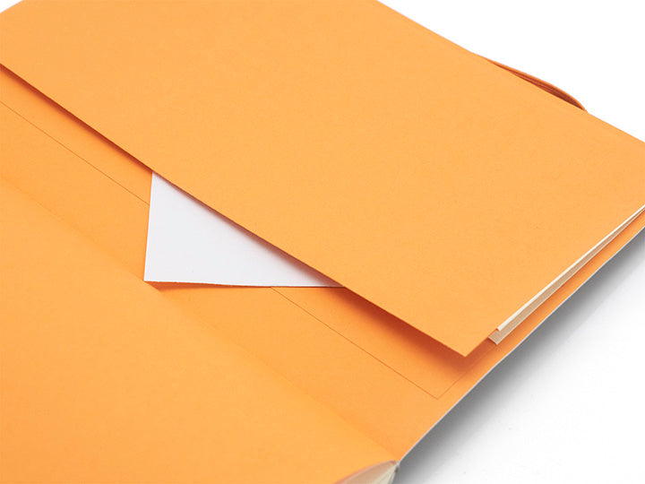 - 貼心小口袋可放置撕下的紙張,書角特別撕口可當標註使用。