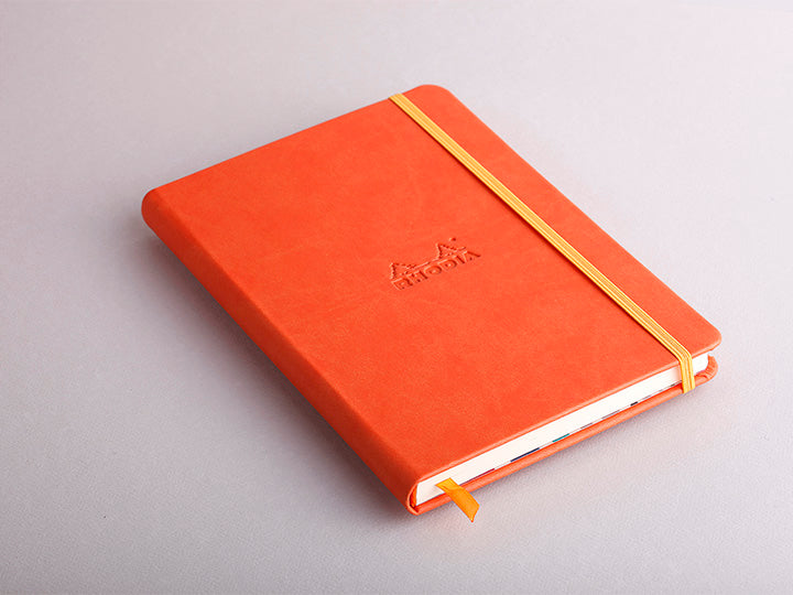 - 硬式彩色封面,展現個人不凡品味,Rhodia 橙色束帶,收納更方便。