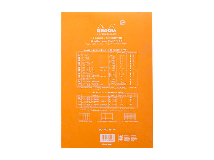 筆記本皆通過 PEFC (泛歐森林)認證,使用材料來自於可持續經營的森林,以保護全球的森林資源。Rhodia 筆記本以經典的橙色與黑色設計熱銷全球,滑順的紙張品質、流暢的翻折頁,以及貼心的撕線設計,讓英國鬼才 Paul Smith 與電影《教父》導演 Coppola 都甘願作為 Rhodia 的俘虜。