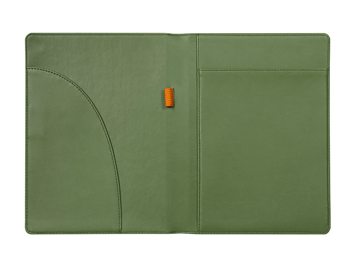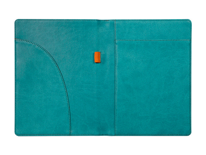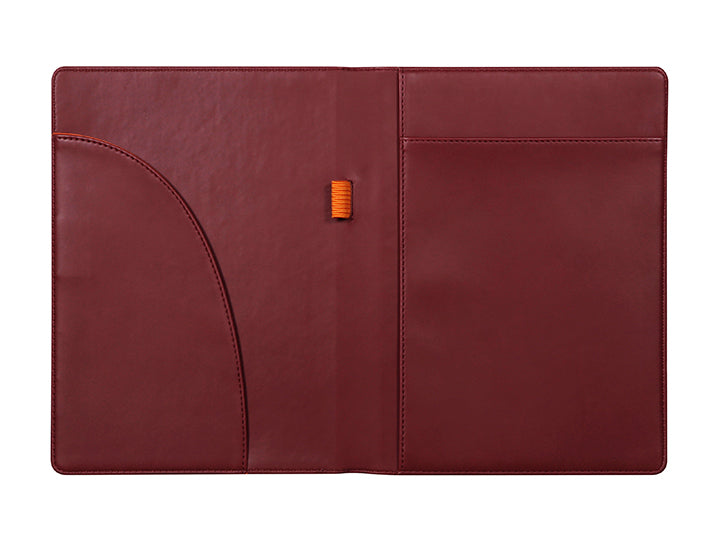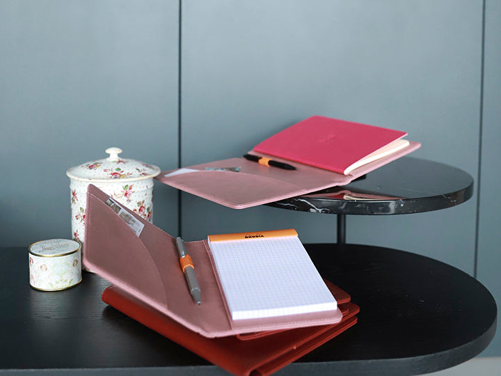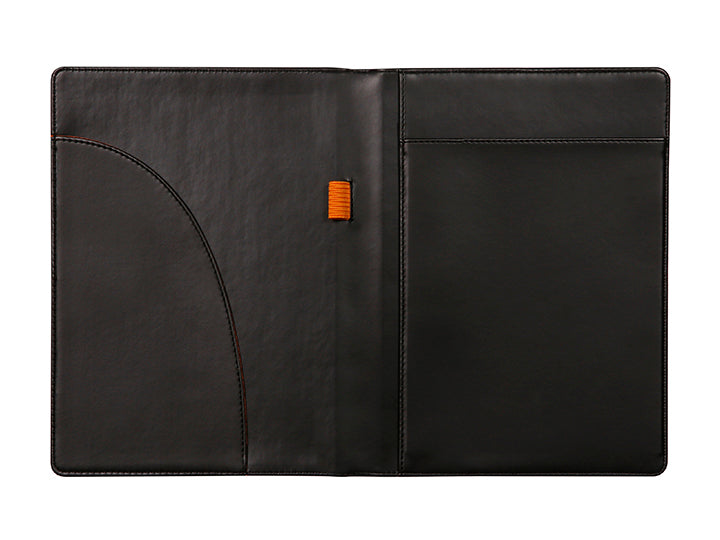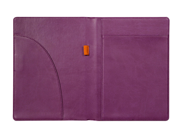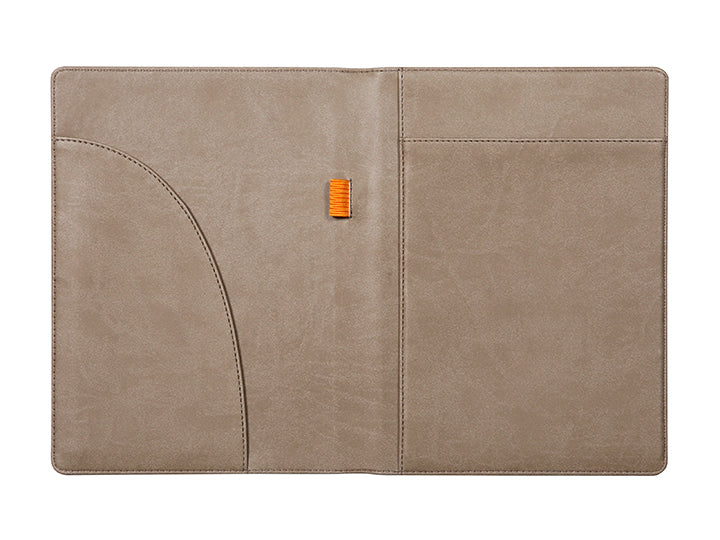 - 硬殼底層設計站著即書寫,右側插頁式收納層則可搭配同品牌左掀式薄型筆記本或上掀式筆記本,而筆記本本身設計是能俐落的撕下紙張存放在筆記本套夾層,一舉多用。