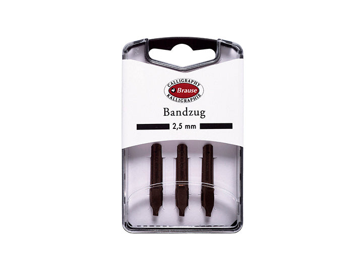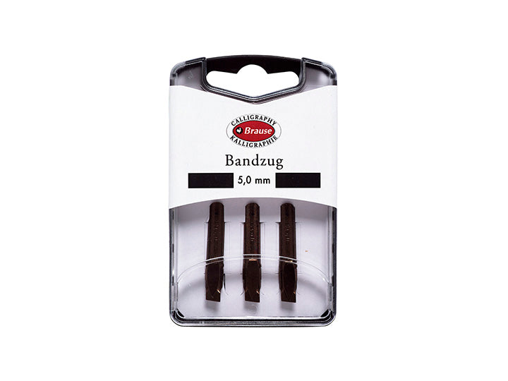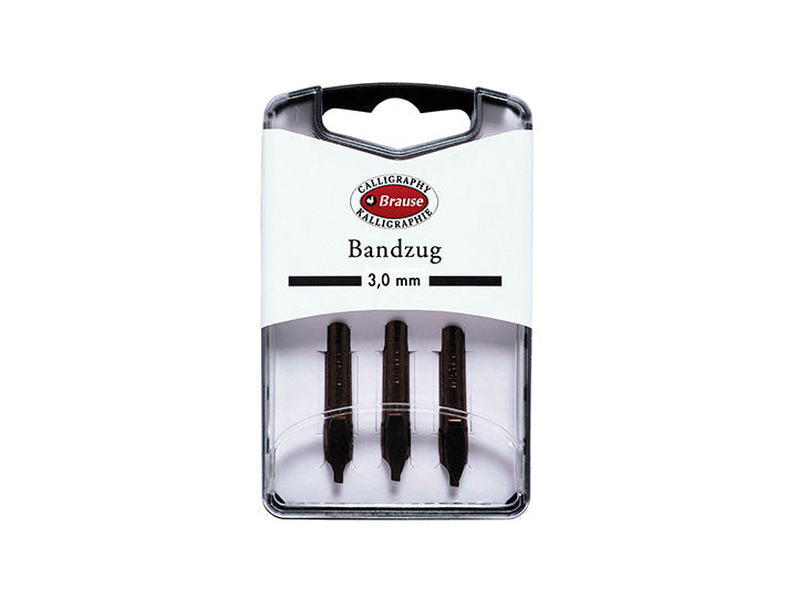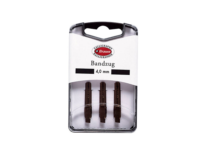 Bandzug 4.0mm,平尖,能書寫出飽滿的字體,它有一個儲液槽,可蘸附更多墨液,適合寫拉丁書法的理想筆尖(例如Unciale、Caroline、Chancellor、Ronde、Gothique)還有哥德體及義大利體書寫。