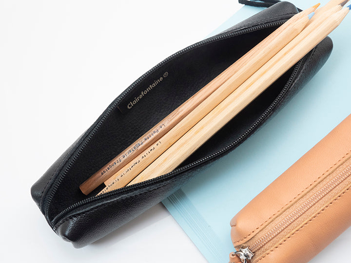 【Clairefontaine|Leather pencil cases】_植鞣小羊皮革拉鍊軟袋 _小方形 _4x2.5x19.5cm