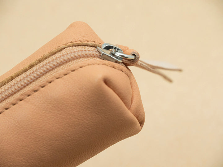 - 小羊皮細緻觸感,拉鍊式植鞣軟皮筆袋,皮革扎實、柔軟,手感舒適。