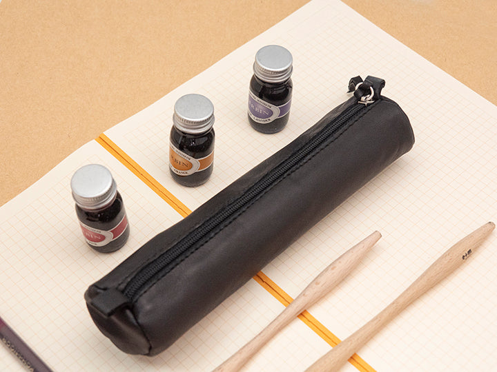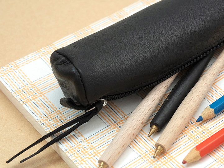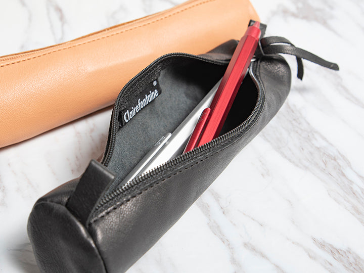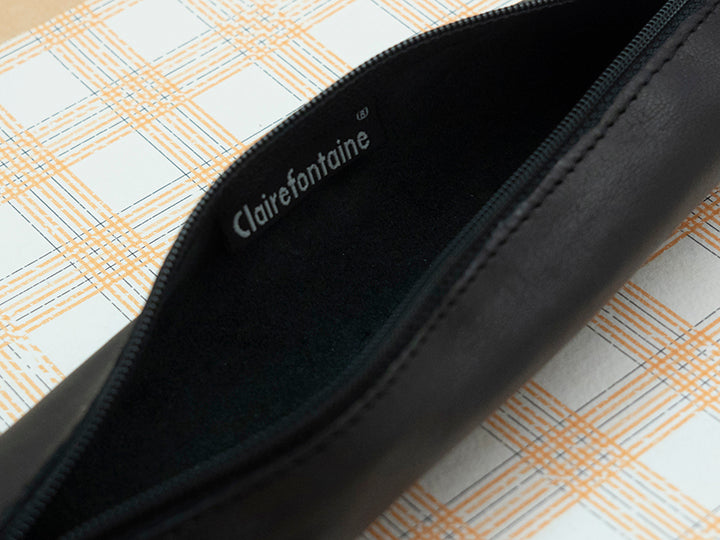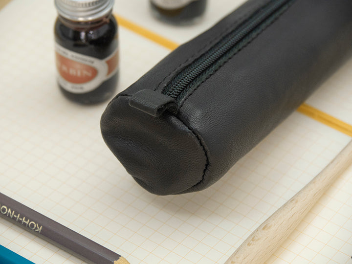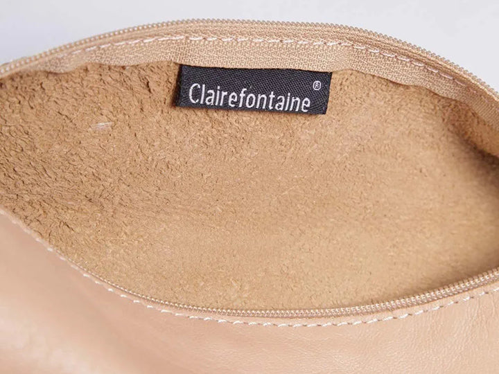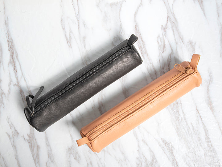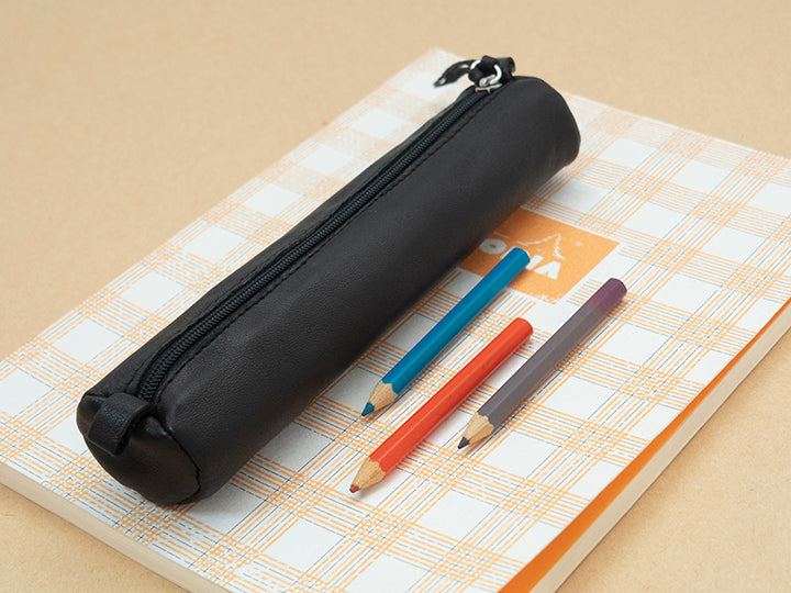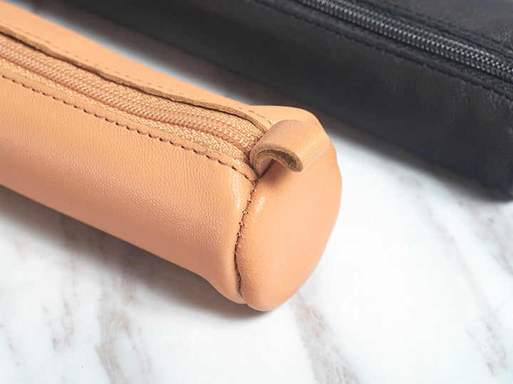【Clairefontaine|Leather pencil cases】_植鞣小羊皮革拉鍊軟袋 _小圓形_Ø35x180mm