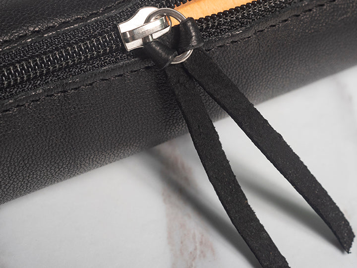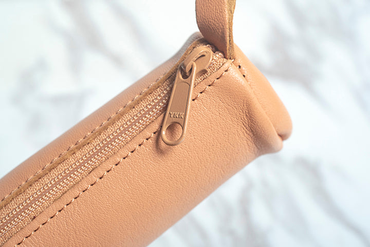 - 筆袋使用日本YKK品牌拉鍊,同色拉鍊開合滑順,品質不言明自知,我們的羔羊皮革使用傳統植物鞣法並結合含羞草和堅硬樹種的提取物,比起鉻鞣法加工較為友善環境,此製作過程不釋放重金屬,鉻或砷。