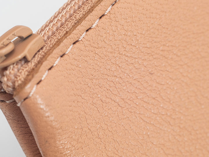 - 小羊皮細緻觸感,拉鍊式植鞣軟皮筆袋,皮革扎實、柔軟,手感舒適,每批小羊皮革都不同,因此有些微的皺褶也屬正常。