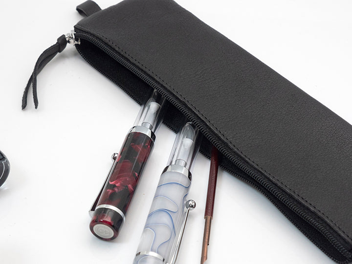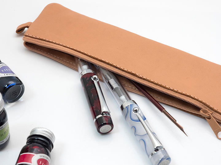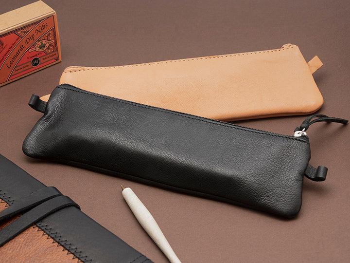 【Clairefontaine|Leather pencil cases】植鞣小羊皮革拉鍊軟袋_袋形_22x6cm