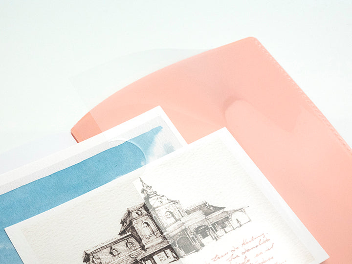 - 橫罫內頁,適合隨手紀錄靈感、筆記抄寫,內部附有兩個透明小口袋,可存放散落的文件或卡片。同時也可以作為書籤使用,每本皆堤供1個標籤可隨意黏貼。