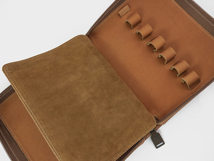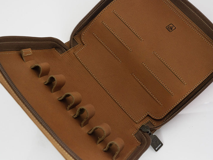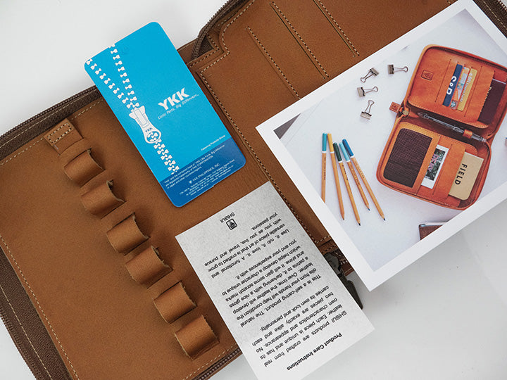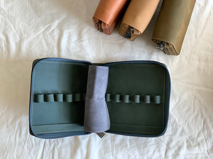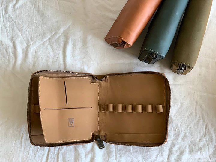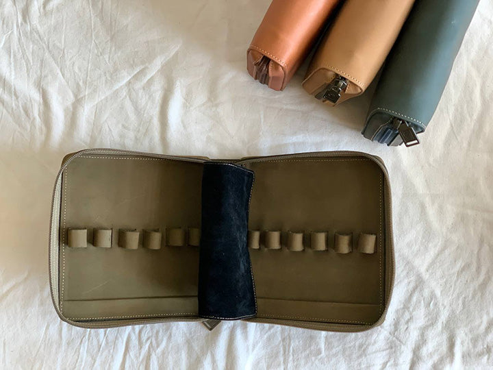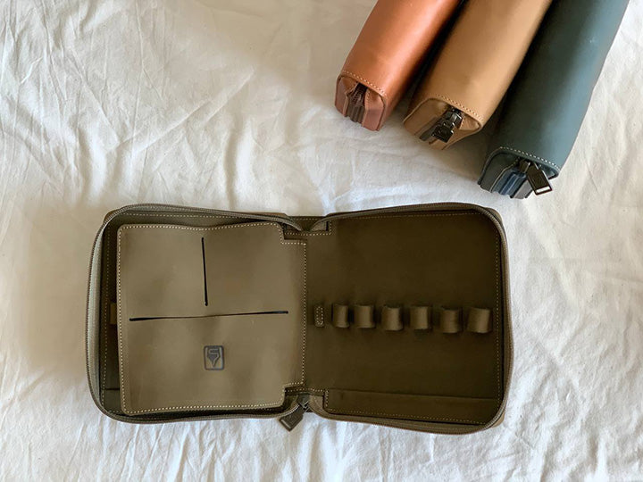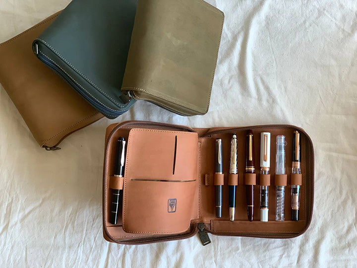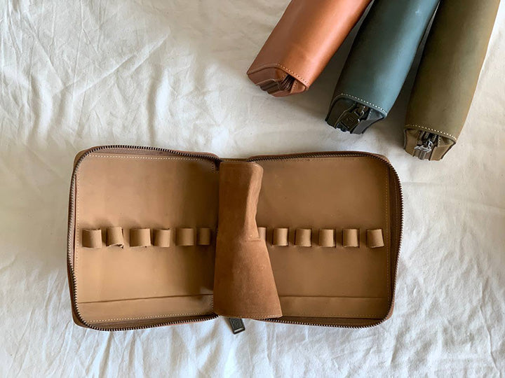 - 比起五支筆包的容量更大,方便放置鈔票、發票和名片等小物,除了兼當日常收納包以外,也能井然有序的展現鋼筆之美。