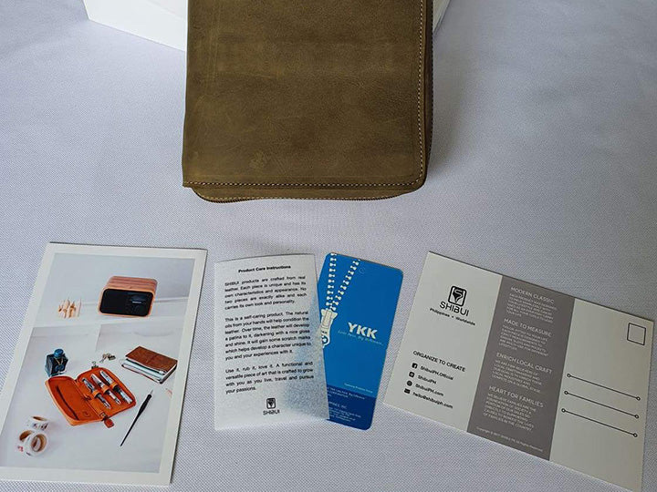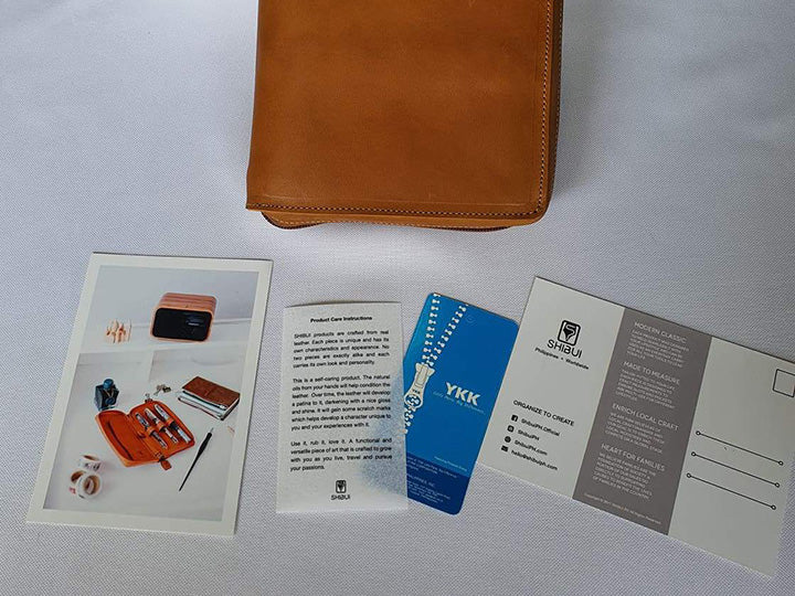 - SHIBUI的筆包外觀為經典雋永風格,內部為實用型設計。皮革製作選用優質全粒面皮革,彷彿能吸附在手上的細緻觸感